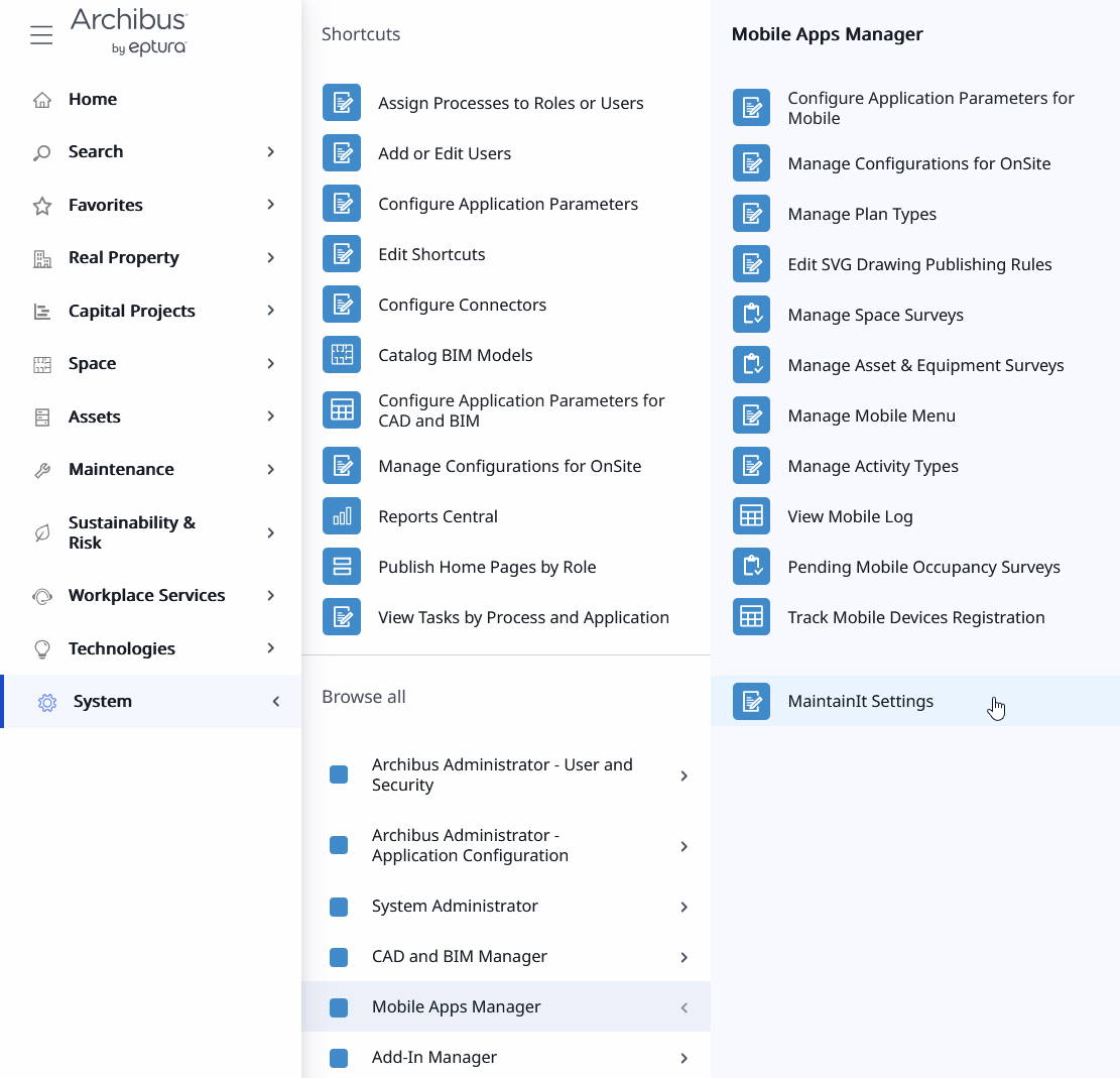 MaintainIt has many settings that allow you to dial in the user experience and business requirements to best serve your organization.  Administrators can access the MaintainIt Settings by going to System > Mobile Apps Manager > MaintainIt Settings.